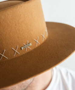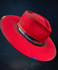 “Handmade from 100% wool felt in the United States, this vintage and unique fedora hat is crafted in an environmentally friendly environment. Each hat is manually processed, aged, fire baked, and painted, resulting in a one-of-a-kind piece. The high-quality Australian wool is breathable and natural, while the sweatband features a non-adjustable synthetic belt with an engraved logo. The package includes two hat paddings to reduce the circumference if needed. Store this hat flat in the provided box to avoid dust and warping. Free shipping is included. This wool fedora hat is perfect for outdoor activities and offers great comfort all day long.”