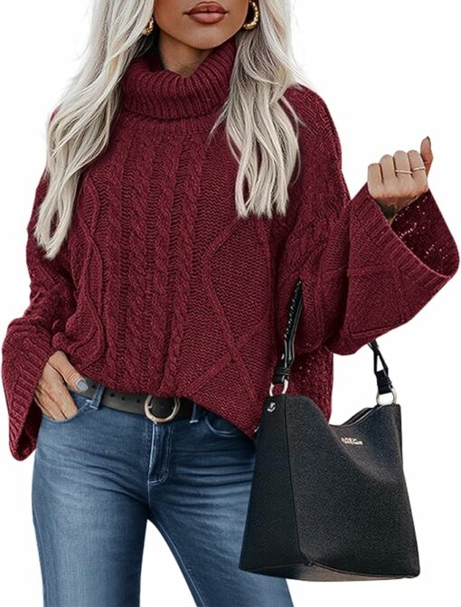 - Material: Made from 70% Polyester and 30% Acrylic, cable knit sweater women features a thick fabric, super soft, skin-friendly and breathable, ensuring all-day warm and cozy in fall and winter