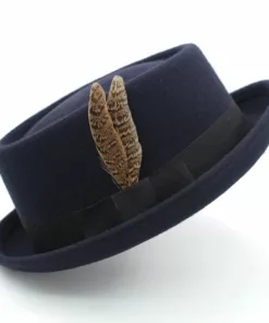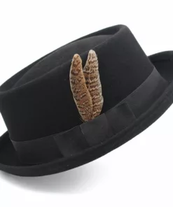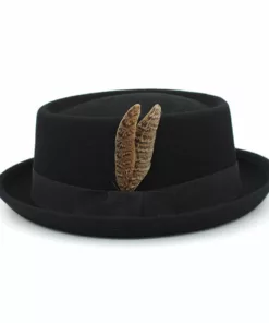Elevate your style with our stylish Feather Band Pork Pie Hat Fedora. This classic hat features a high crown measuring 4.33 inches and a brim width of 1.38 inches, adding a touch of timeless charm to any ensemble. Adorned with a chic feather band, this hat exudes sophistication and is the perfect accessory for both formal and casual occasions. Step out in confidence with the elegance of our Feather Band Pork Pie Hat Fedora.
