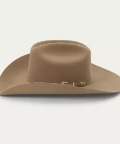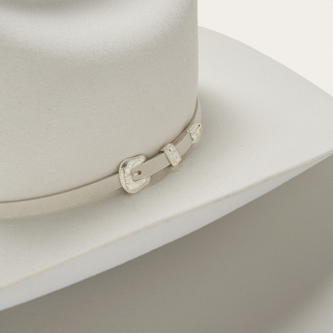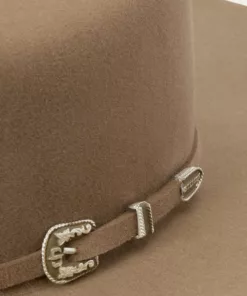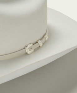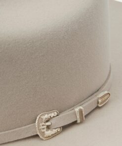 The Deadwood, a premium wool cowboy hat boasting a classic cattleman’s silhouette with a taller, 4 5/8″ crown and curved 4″ brim. This high-quality hat is adorned with refined accents like a 3-piece silver buckle on the matching hatband. Stay cool and comfortable with the leather interior sweatband. Elevate your Western style with the Deadwood cowboy hat, where quality meets elegance.