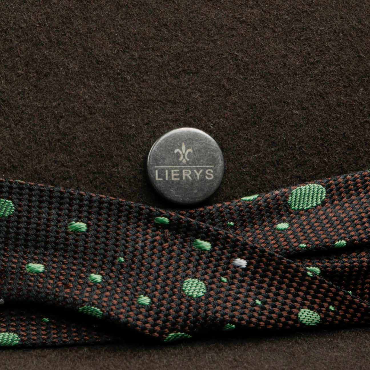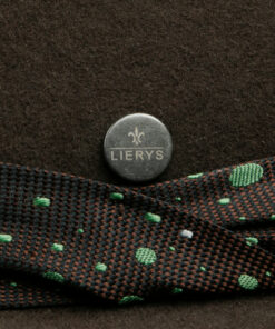 The typical shape of a traveller hat – with deep indentations and a wide brim – makes this handmade felt hat look timeless and elegant. The dynamically designed grosgrain ribbon, which is gallantly twisted on the side, is a particularly eye-catching feature. It attracts attention with its two overlapping patterns: a micro check and a contrast-coloured pattern made up of small and large ovals.