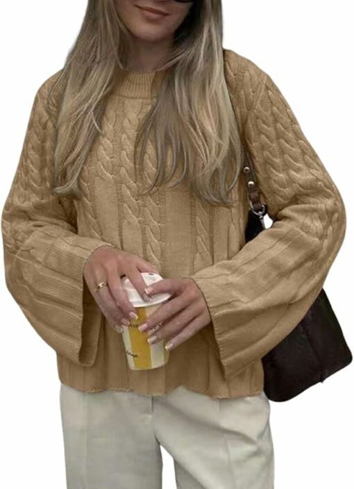 - Cable Knit Sweater for Women: Featuring a comfortable crew neck design and long sleeves, this women oversized sweater is perfect for layering over your favorite tops and pants. Whether you wear it with jeans, leggings, or a skirt, it’s sure to add a touch of charm to your outfit