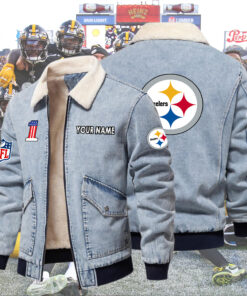 Steelers Fleece Denim Jacket Custom Name