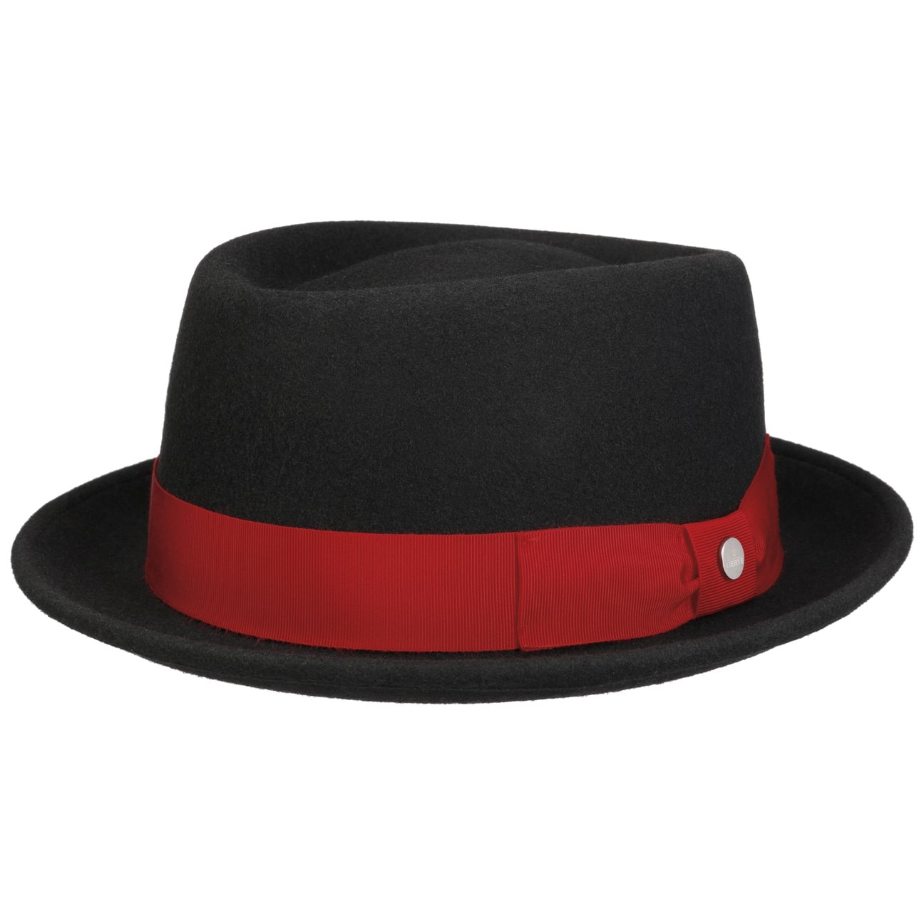 A special feature of this Italian-made hat with diamond-shaped crown is the elegant quality of its material, in addition to its narrow brim. The superior quality fine felt makes the hat water-repellent and crushable, and also ensures it retains its shape. It also enhances the appearance of the high-quality hat by giving it a stylishly classic elegance that is a feast for the eyes. A leather trim band rounds off the look with a touch of modernity.