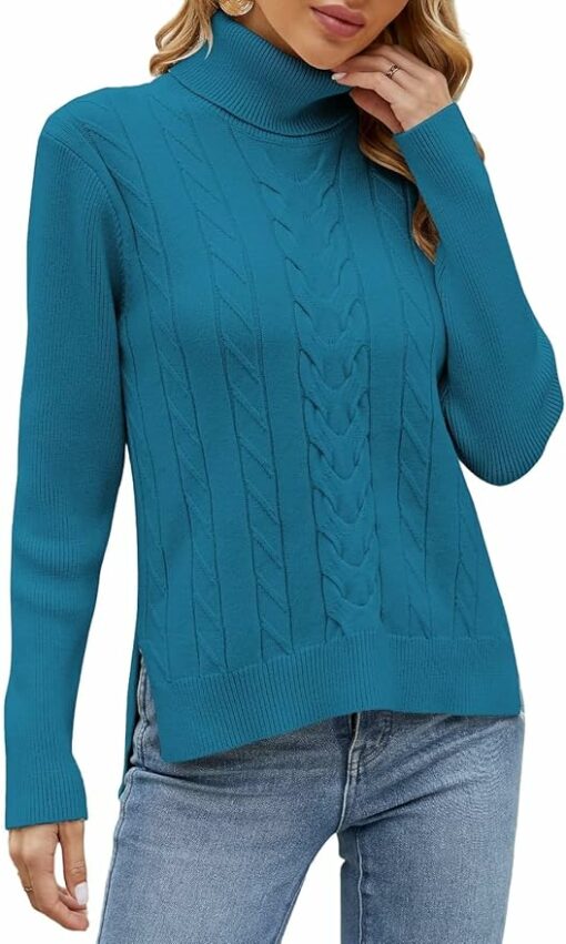 - This womens chunky cable knit turtleneck sweater comes in a solid color design that adds a fashionable vibrancy to your outfit
