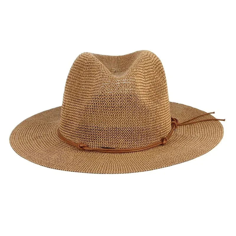 Embrace Western style and stay protected from the sun with this wide brim straw sun hat. Suitable for both men and women, this Panama-inspired fisherman cap features a wind lanyard for secure wear during outdoor activities. Perfect for beach outings and fishing trips in the summer, this hat combines fashion and function for your outdoor adventures