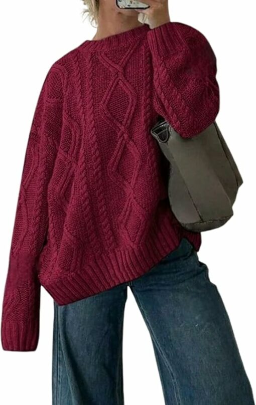 - Cable Knit Sweater for Women: Featuring a comfortable crew neck design and long sleeves, this women oversized sweater is perfect for layering over your favorite tops and pants. Whether you wear it with jeans, leggings, or a skirt, it’s sure to add a touch of charm to your outfit
