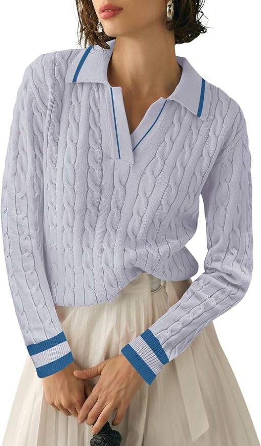 - The cable knitted sweater is made of 50% Viscose, 28% Polyester, and 22% Polyamide. Skin-friendly, warm and stretchy fabric. Super soft fine knit, and perfectly tailored fit provide a wonderfully comfortable wearing experience.